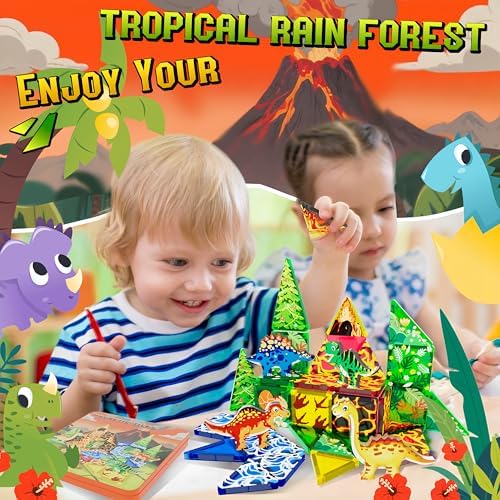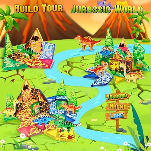 Explore a thrilling 48-piece dinosaur magnetic set that brings the excitement of the prehistoric world to life. Featuring vibrant volcano, jungle, and fossil prints, each lively dino character invites endless creativity. Kids can craft fantastic dino parks, simulate volcano eruptions, and create diverse habitats, igniting their imagination and wonder.