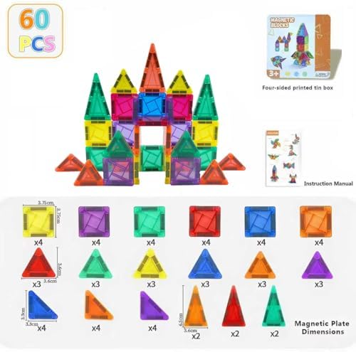 Make playtime educational and engaging with the Mini 60 PCS Magnetic Tiles Set—where creativity meets learning!