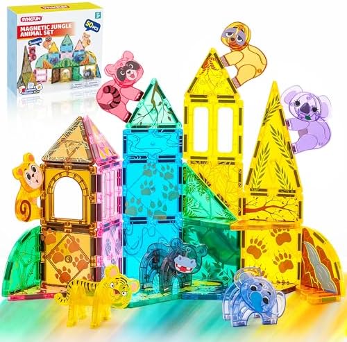 With 50 pieces, this set features popular dinosaurs such as T-Rex, Spinosaurus, Triceratops, Stegosaurus, and Brachiosaurus. The rich assortment of both dinosaur figures and magnetic tiles encourages imaginative play, allowing young builders to customize unique dinosaur landscapes.